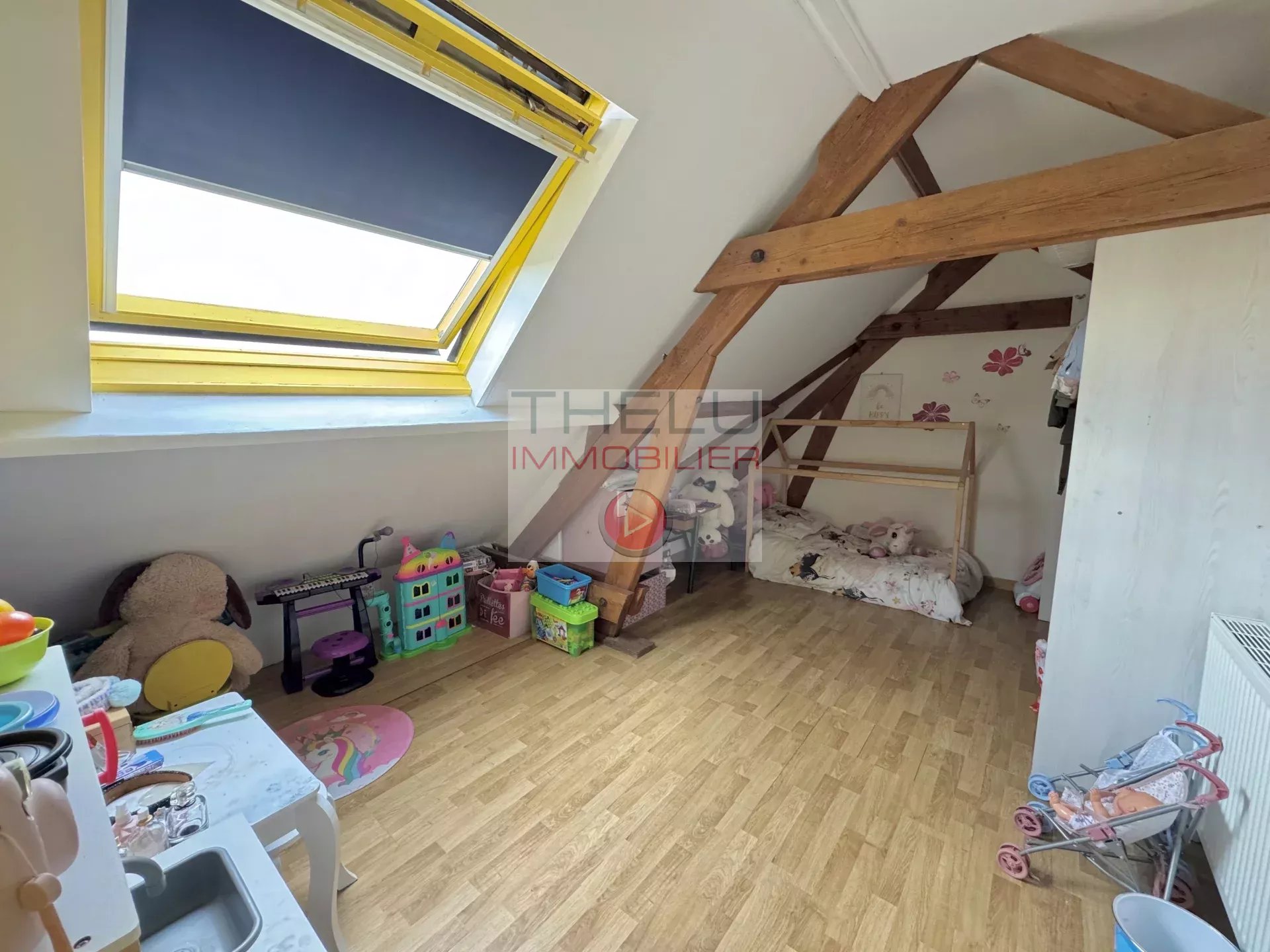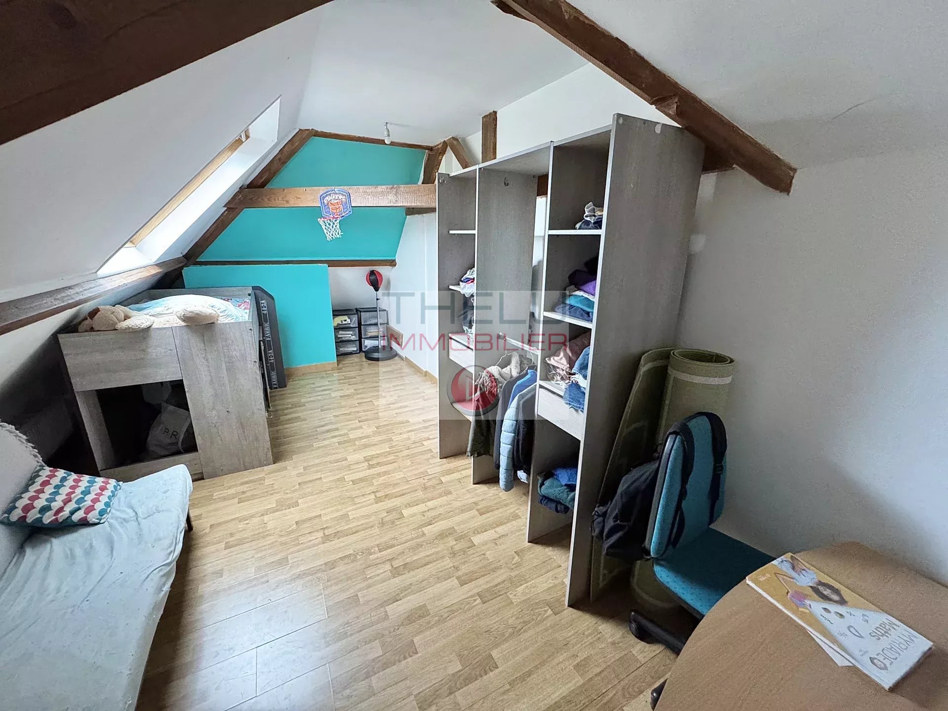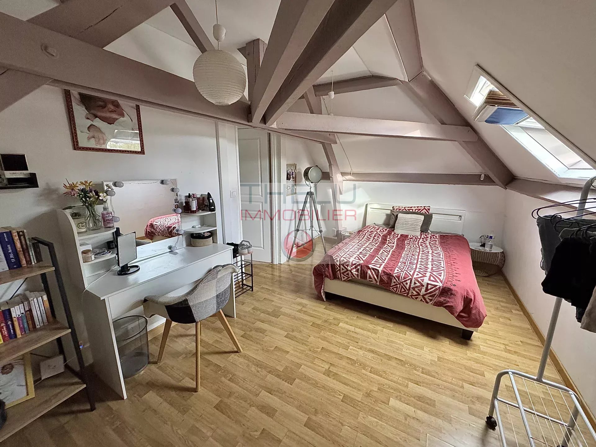 L’étage distribue quant à lui trois chambres, aménagées autour d’un palier, ainsi qu’un grenier. La maison est bien entretenue et offre des volumes agréables.