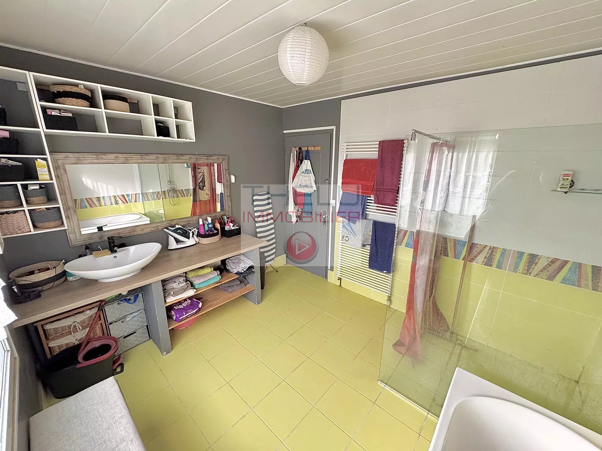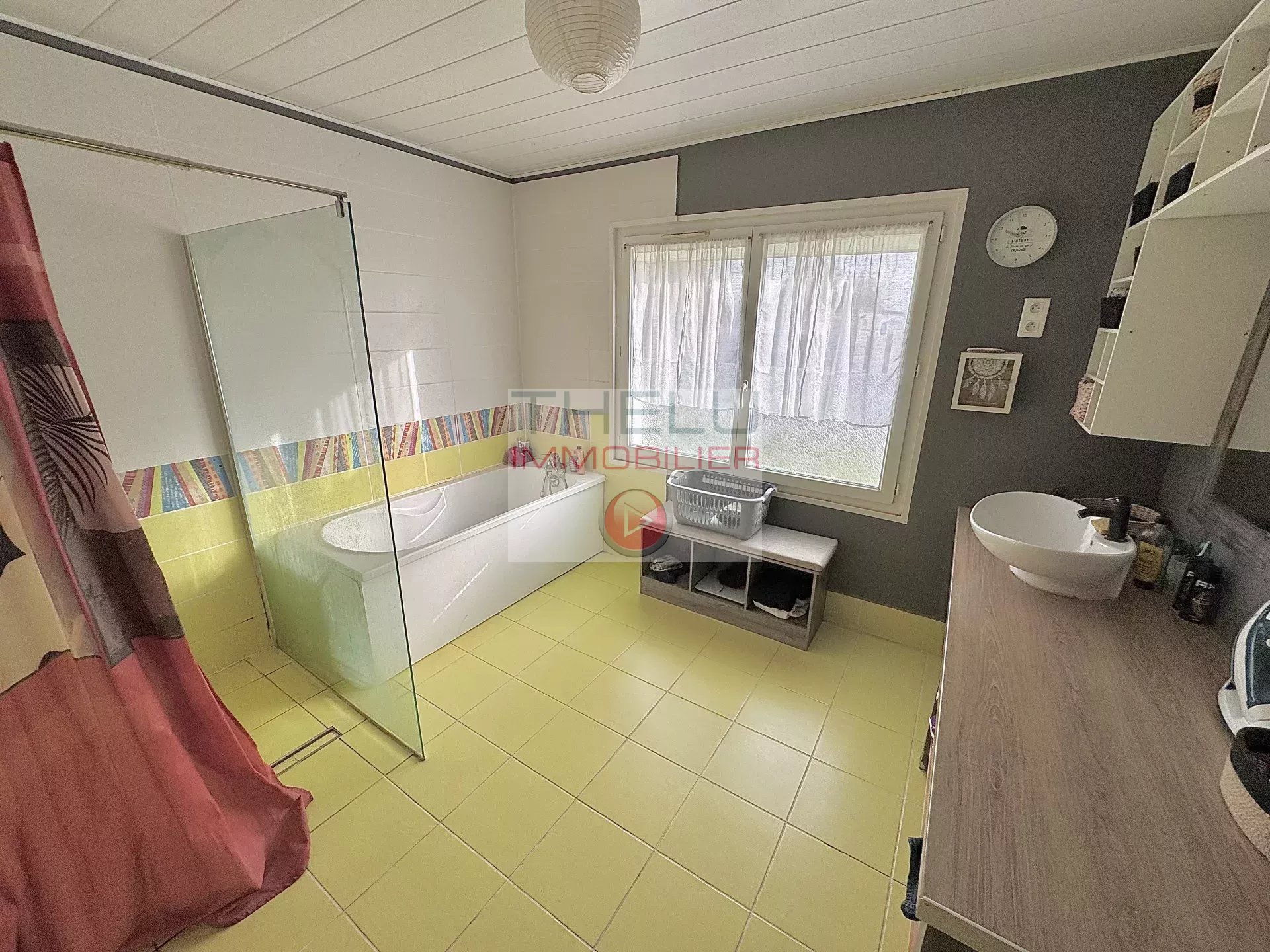 Le sous-sol complet est un vrai plus : il accueille une pièce polyvalente de 34 m² environ, exploitée en salle de jeux, ainsi qu’un atelier, une buanderie et l’espace chaufferie.